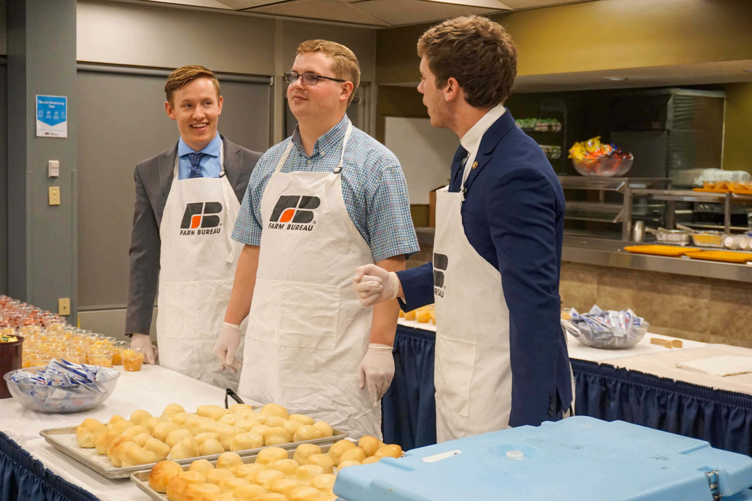 Farm Bureau president Garret Hawkins speaking to the crowd