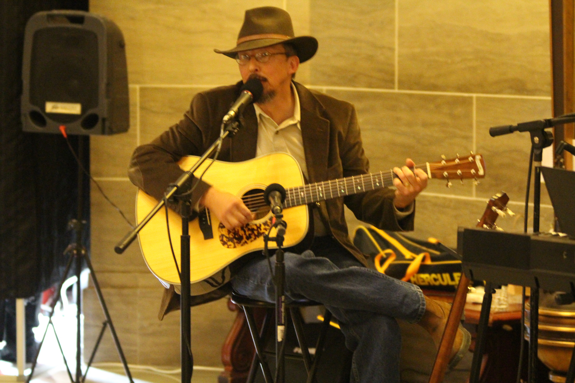 A few hundred people stood by in the rotunda to get a glimpse of the cake before it was sliced and distributed. A few local musicians, Rob Ray Souden and Mike Michaelson, played guitar, banjo, and keyboard, a photo booth was put up where people could take pictures of themselves with the Capitol green screened in and people could read the history of the Capitol building.