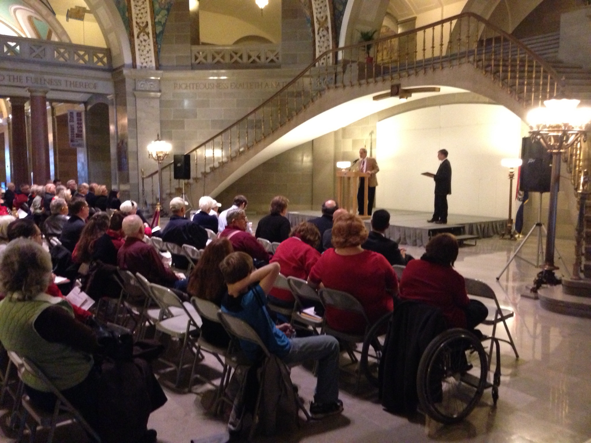 Calzone said the rally was usually held on the first day of the legislative session, but that the inauguration of the governor this year created a scheduling conflict in the rotunda.