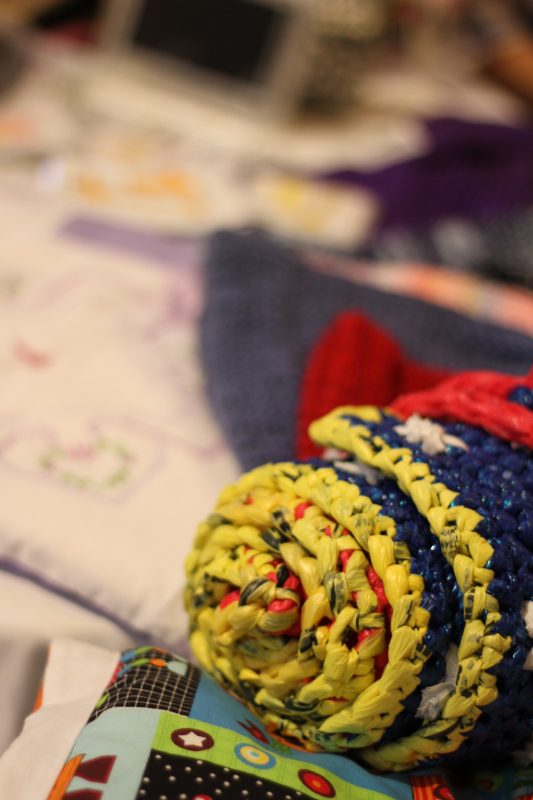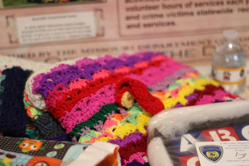 On display at the Capitol Day were knitted hats, weighted blankets and vests, embroidery, and paintings all created by inmates in the Restorative Justice program. The items the offenders make are often donated to benefit organizations.