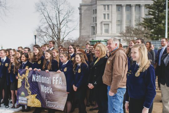 JEFFERSON CITY, Mo. – Arriving to the event in an John Deere tractor, Gov. Mike Parsons spoke to more than 80 FFA members about agricultures…