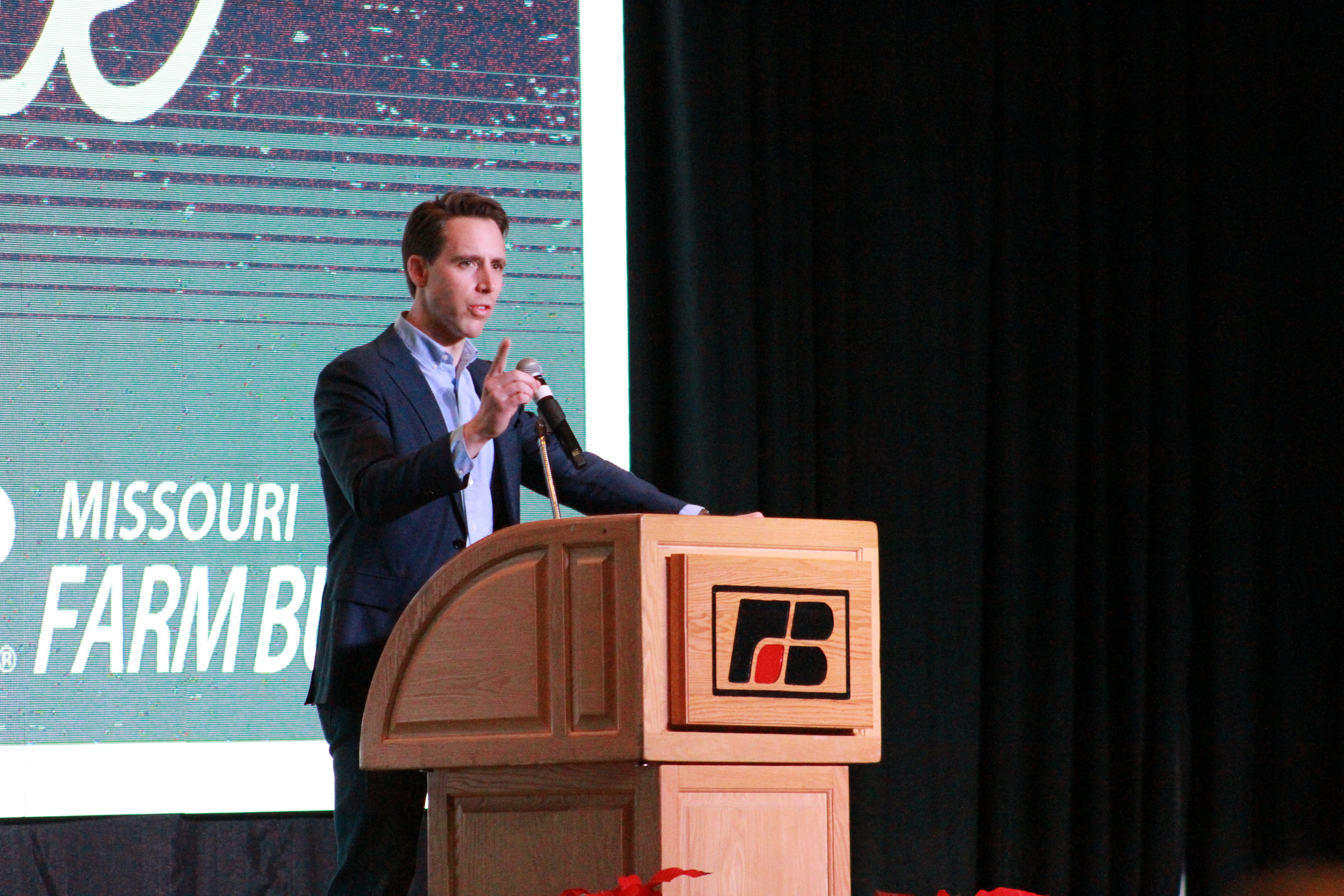 “I am so proud to be a farmer,” said Parson, who was introduced as a “longtime friend” of the Missouri Farm Bureau. Parson runs a cow/calf operation in Bolivar and is from generations of farmers.