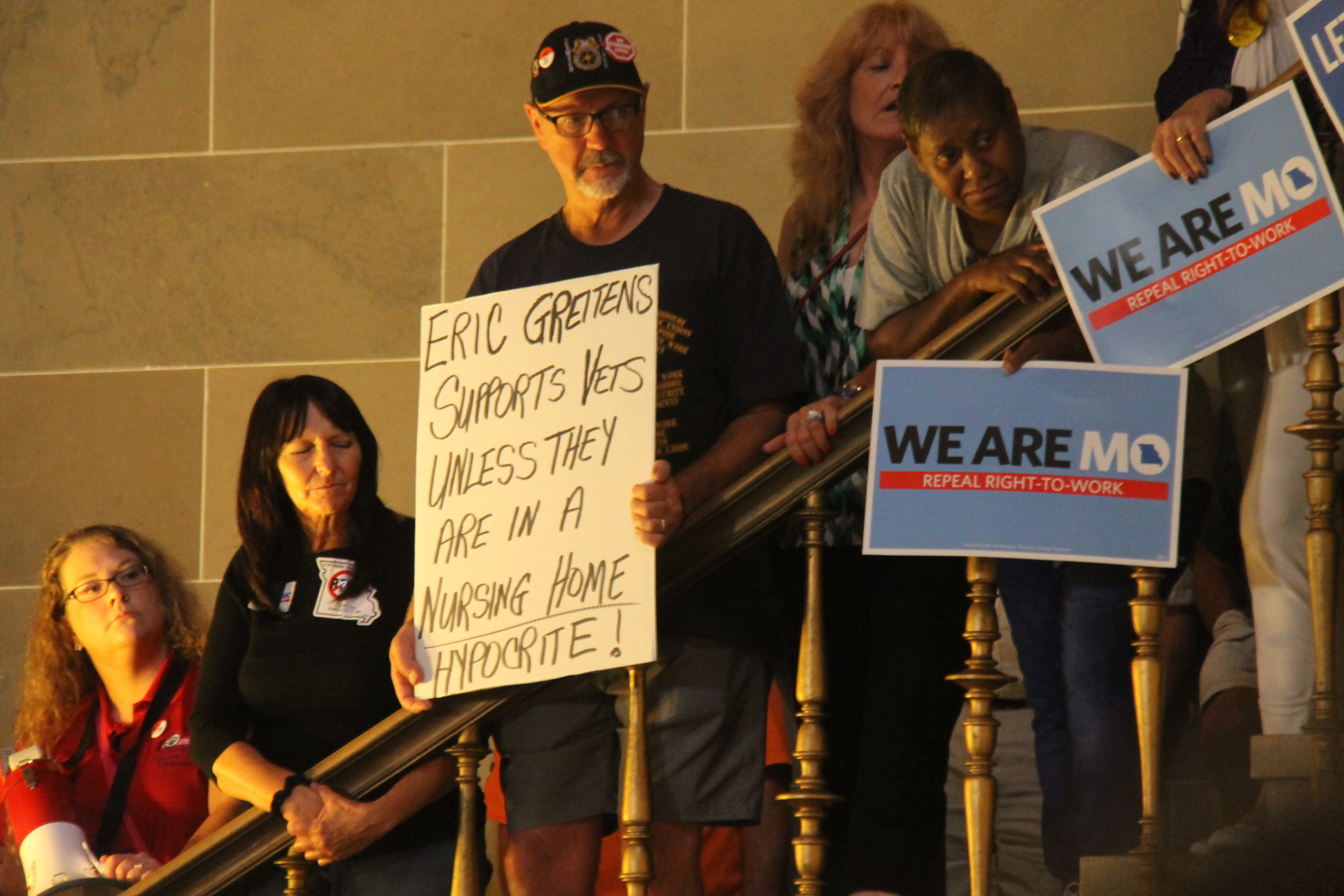 The successful efforts from the unions struck a major blow against Gov. Eric Greitens and the Republican-led Legislature, as an estimated 2,000 people attended the rally and march to the Secretary of State’s Office, chanting “Show me what democracy looks like, this is what democracy looks like” and “Hey Greitens, you can’t hide, we can see your greedy side.”
